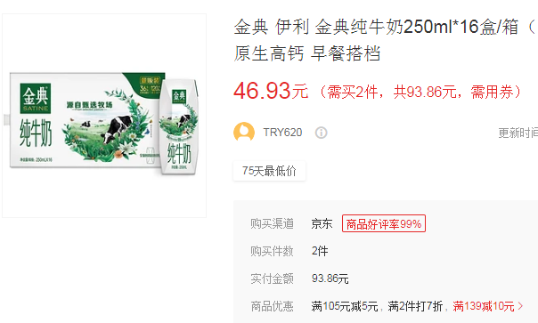 金典牛奶多少钱一箱?特仑苏纯牛奶多少钱一箱?